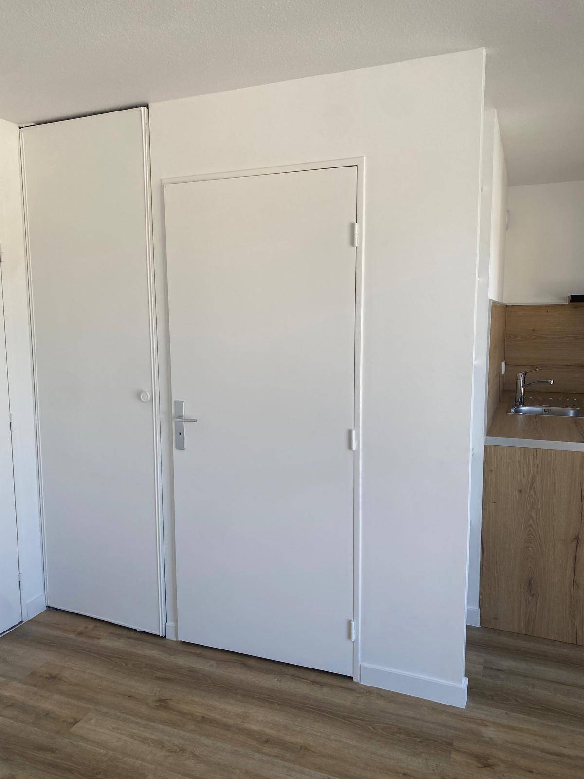 Application de peinture velours blanc sur l'ensemble du logement, y compris les portes