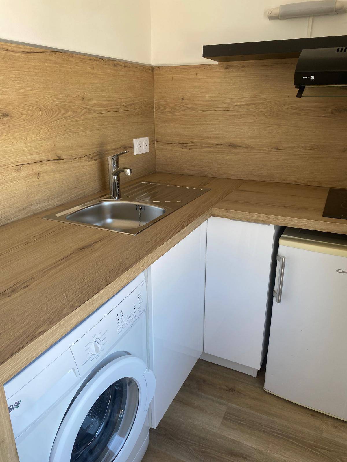Dépose de la kitchenette avec conservation de la plaque de cuisson, de la hotte et des meubles hauts.